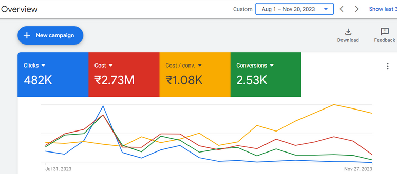 Cost per conversion decresed by half in just 3 months, and Conversion increased by 60%.